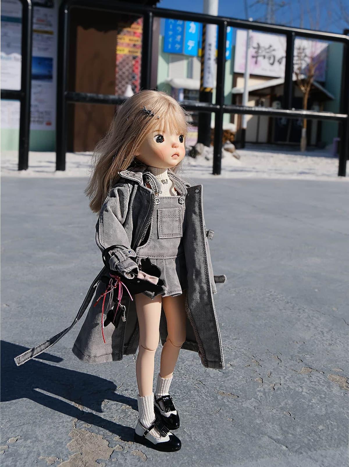 ✨ Vintage-Inspired & Handcrafted – This denim overall dress is made from premium fabric in khaki, black, and gray tones, effortlessly matching any doll’s wardrobe.