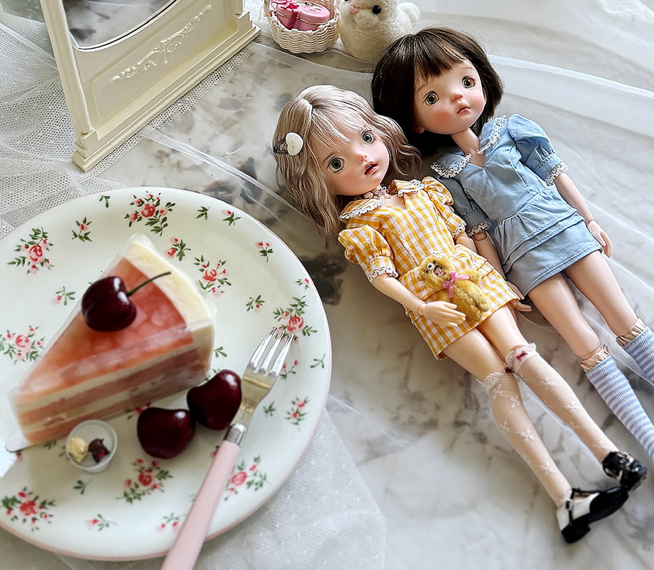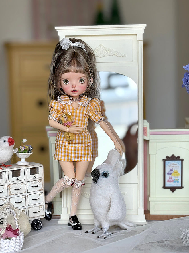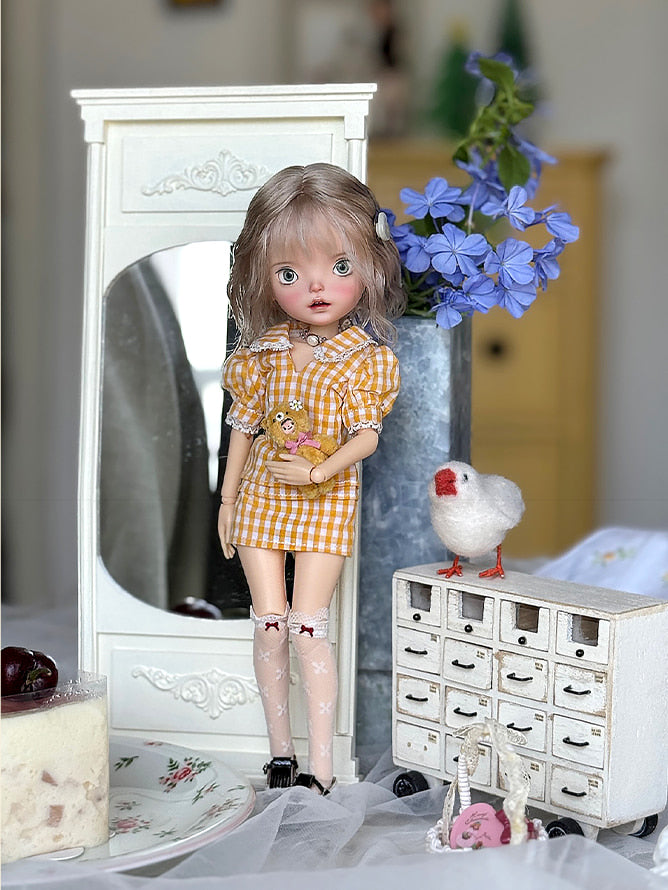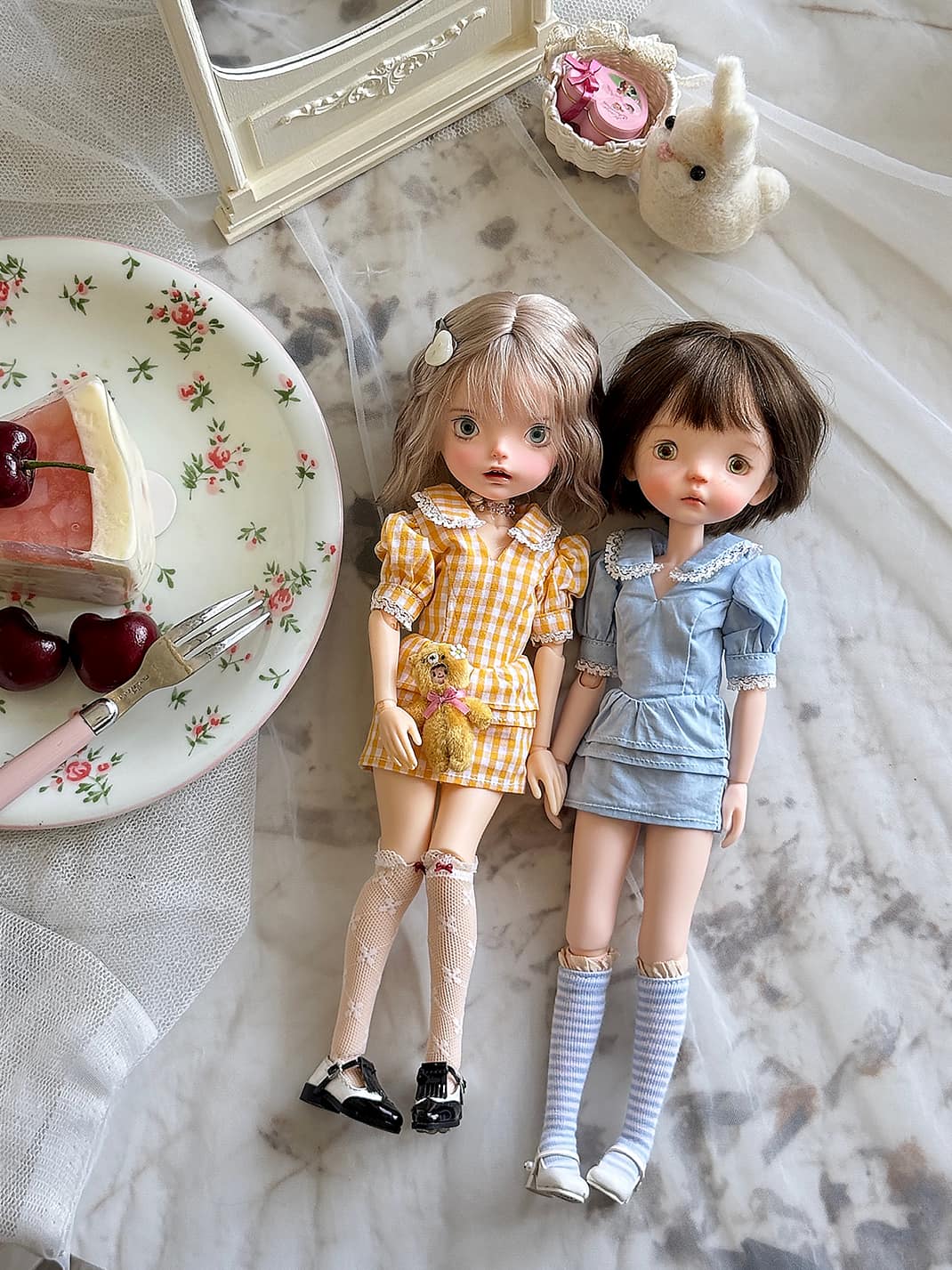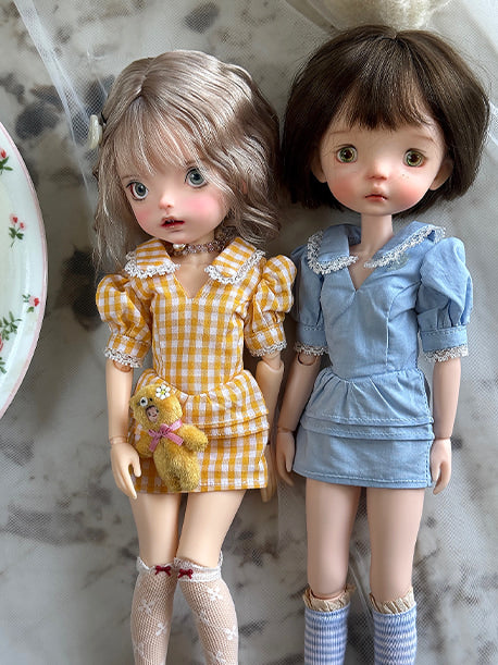 A delicate French romantic doll dress designed for OB22 / OB24 bodies, perfect for 1/6 scale dolls like Blythe and Azone. Available in two charming styles, each crafted with timeless vintage details and soft feminine touches.