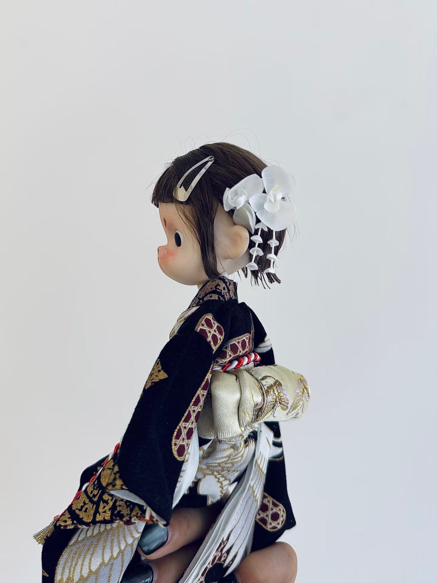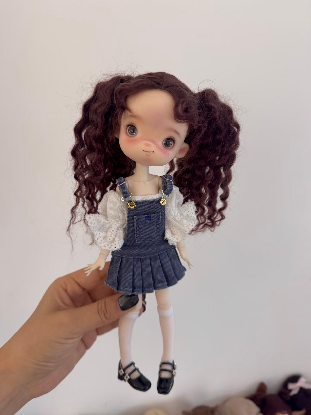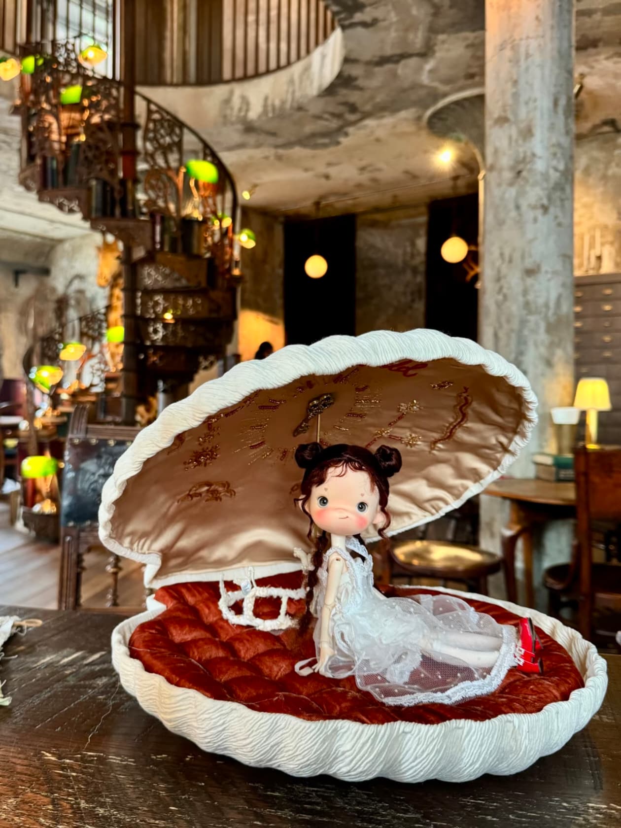 Jenju was born from a very personal story — inspired by a little rescue dog I adopted half a year ago. When I first met her, she was anxious, wounded, and scared. But with time and love, she blossomed into a confident, sassy little soul, brimming with trust and light. That journey from pain to joy, from fear to warmth, was something I wanted to preserve in doll form. Jenju is that memory — my tiny pearl of healing and love.