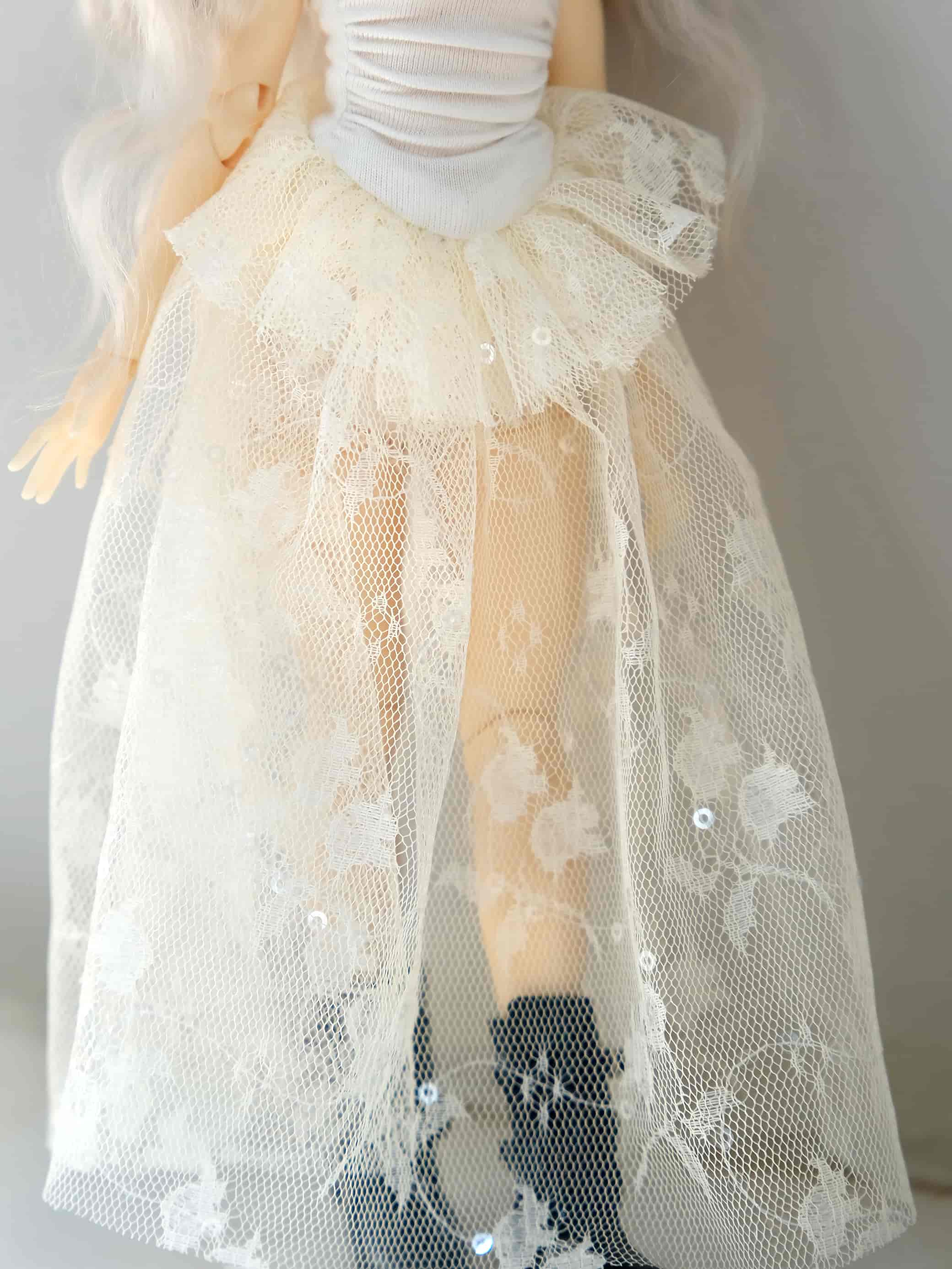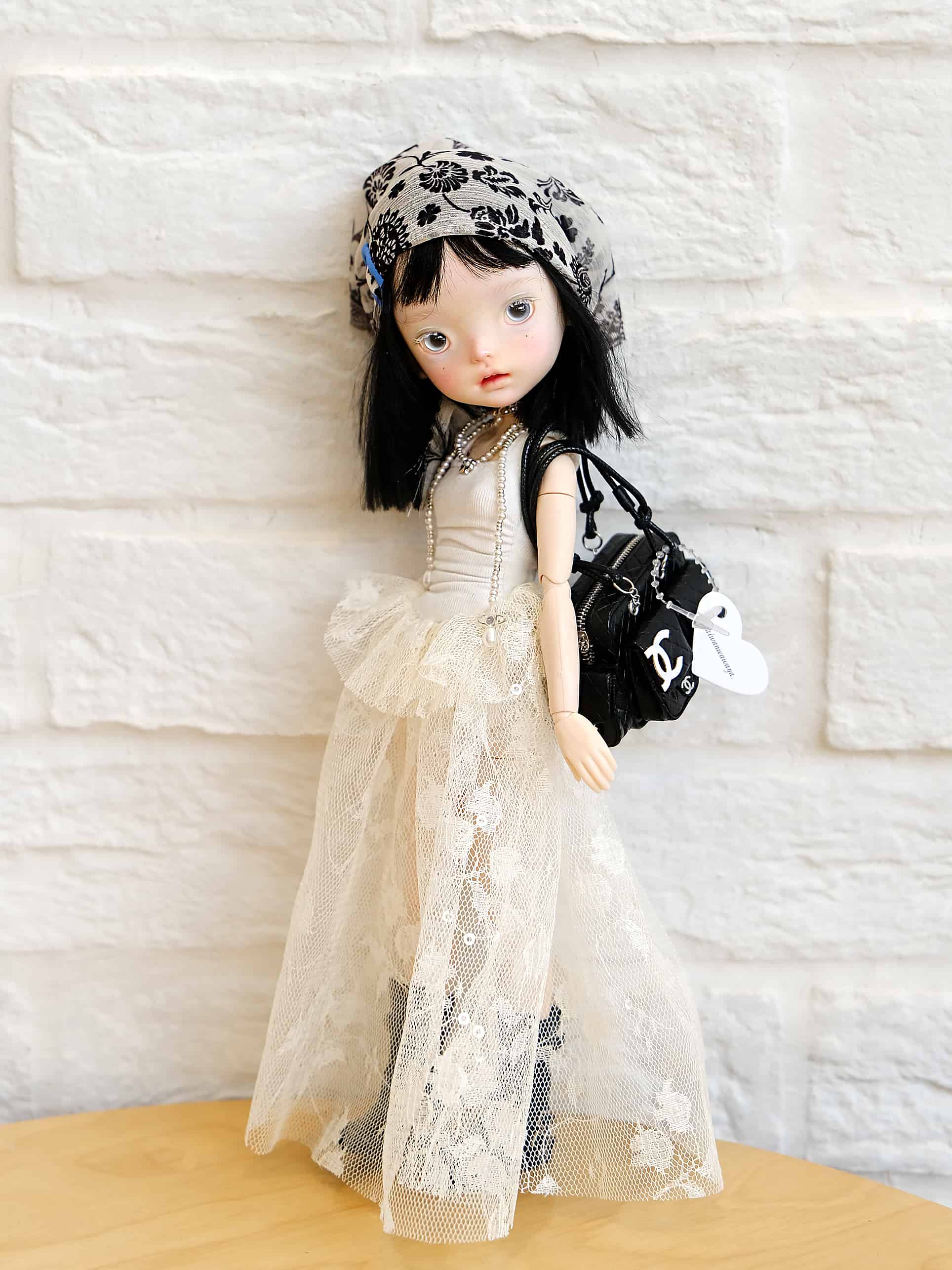 This pearl ballerina-style gown is designed to fit OB22 and OB24 body types, whether your doll is a BJD or a Blythe. With its high-waisted silhouette and layered tulle skirt, it brings out elegance and charm in every pose.