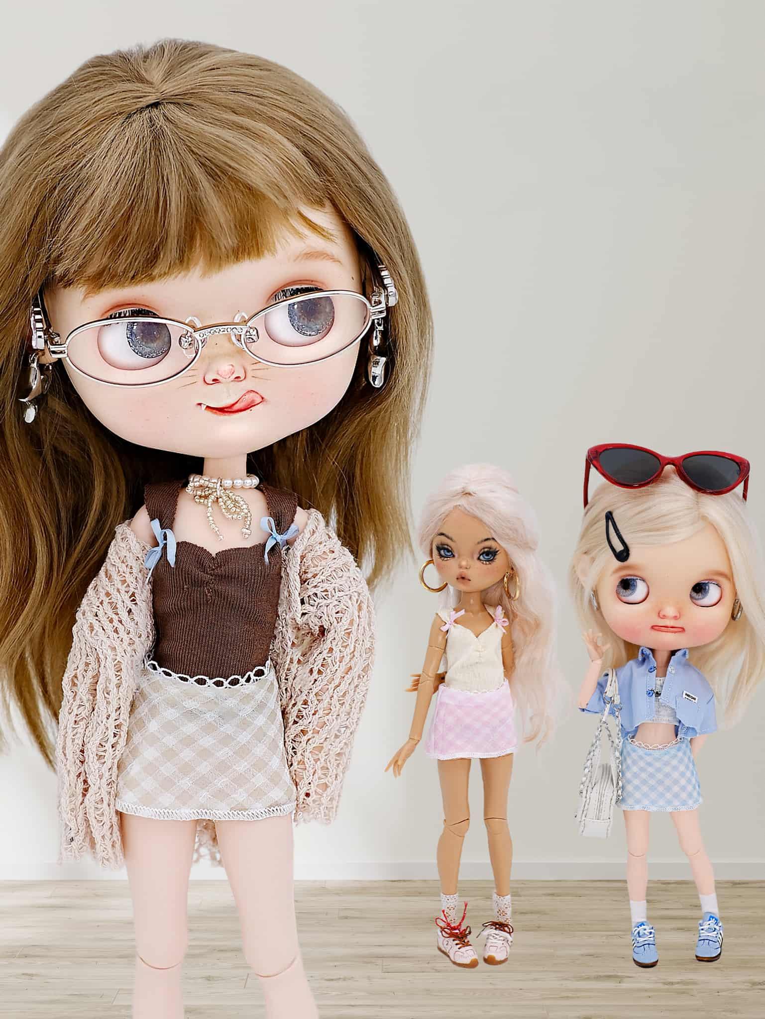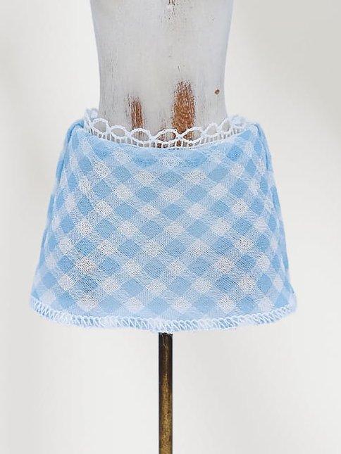 ✨ Vintage Plaid with Dreamy Tulle – Featuring a light blue and white checkered tulle fabric, this skirt adds a soft, vintage charm to your BJD or Blythe doll.